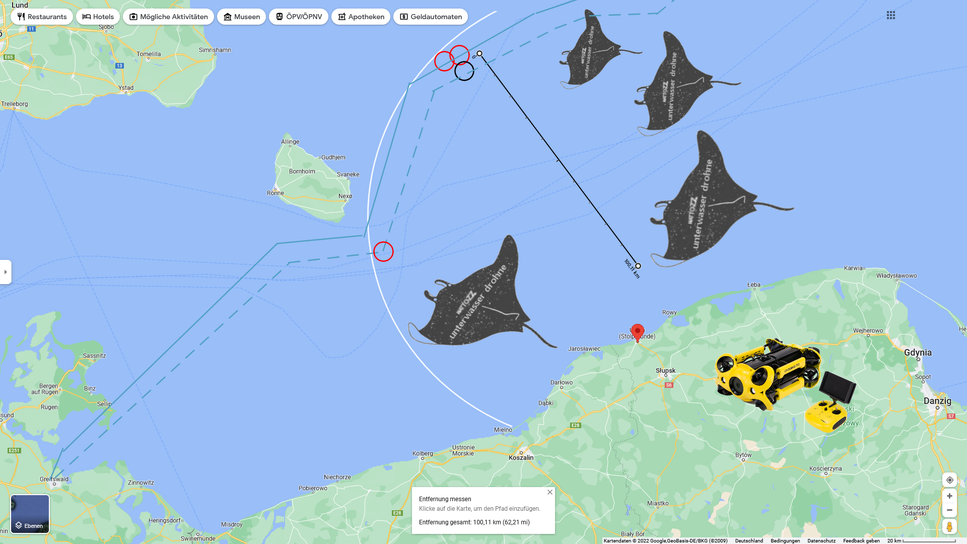 Es ist zwar möglich mit der CHASING M2 ROV Wartungs-Drohne die Koordinaten der Nordstream Pipeline zu ermitteln, die Aktion wäre aber über Satellitenbilder sichtbar geworden.