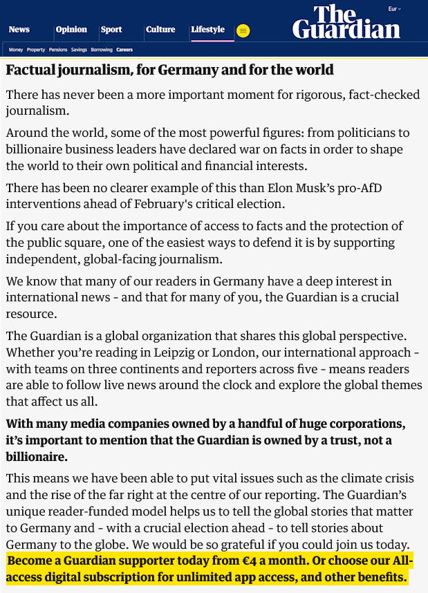 Da viele Medienunternehmen im Besitz einer Handvoll Großkonzerne sind, ist es wichtig zu erwähnen, dass der Guardian einem Trust und nicht einem Milliardär gehört.